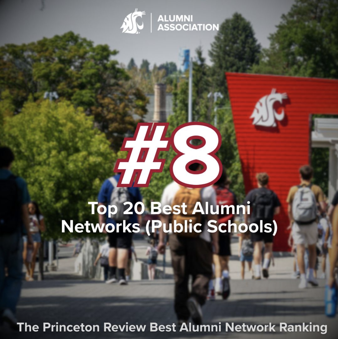 Washington State University has once again been recognized by The Princeton Review for having one of the strongest alumni networks, ranked 8th among all U.S. public universities. This marks our third year in the Top 20, thanks to the unwavering support of our global Cougar community. Go Cougs!